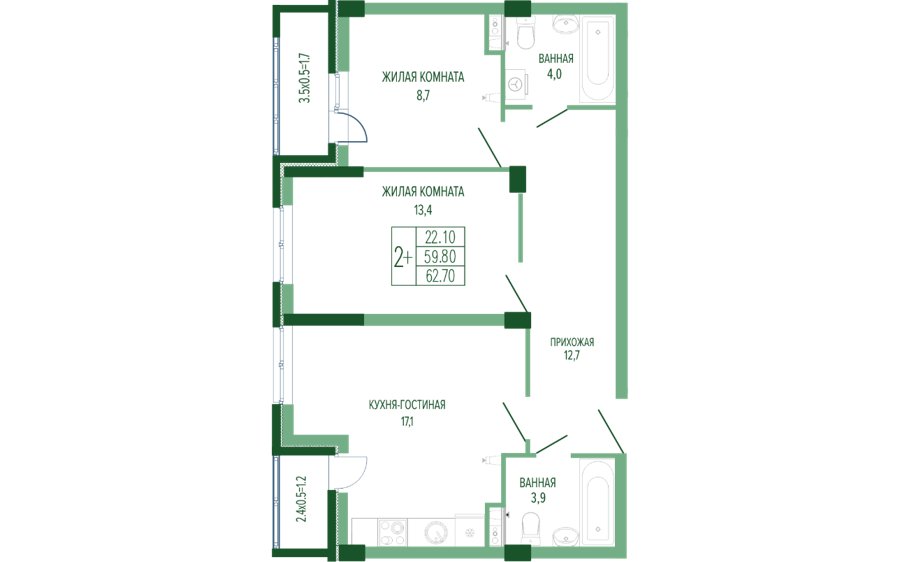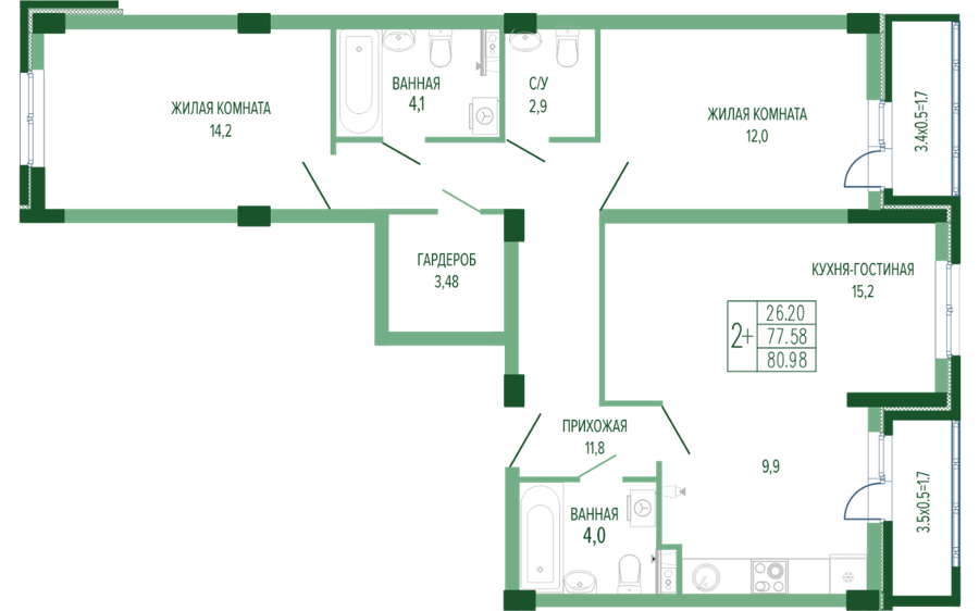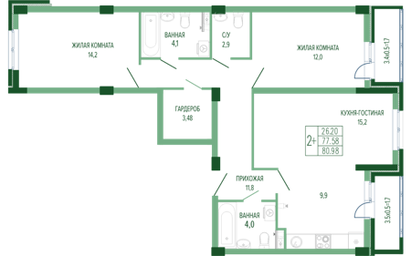 Однако, стоит отметить, что несущие конструкции домов позволяют объединять несколько квартир в одно помещение. Именно поэтому проектируемая нарезка квартир подходит как под объединение, так и под индивидуальное использование.