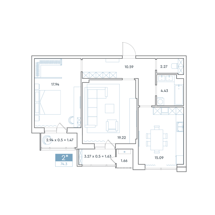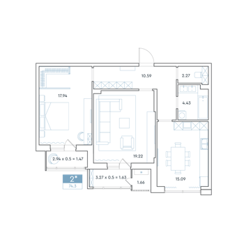 Старт продаж Сдача III квартал 2027 1, 2, 3 комнаты от 20 до 74.3 м2 от 3,1 до 9,9 млн. руб.