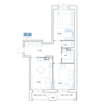 Старт продаж Сдача II квартал 2027 1, 2, 3 комнаты от 20.33 до 89.47 м2 от 3,2 до 14,1 млн. руб.
