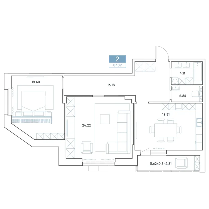 Старт продаж Сдача IV квартал 2027 1, 2, 3, 4, 5 комнат от 41.5 до 157 м2 от 8,5 до 95,1 млн. руб.